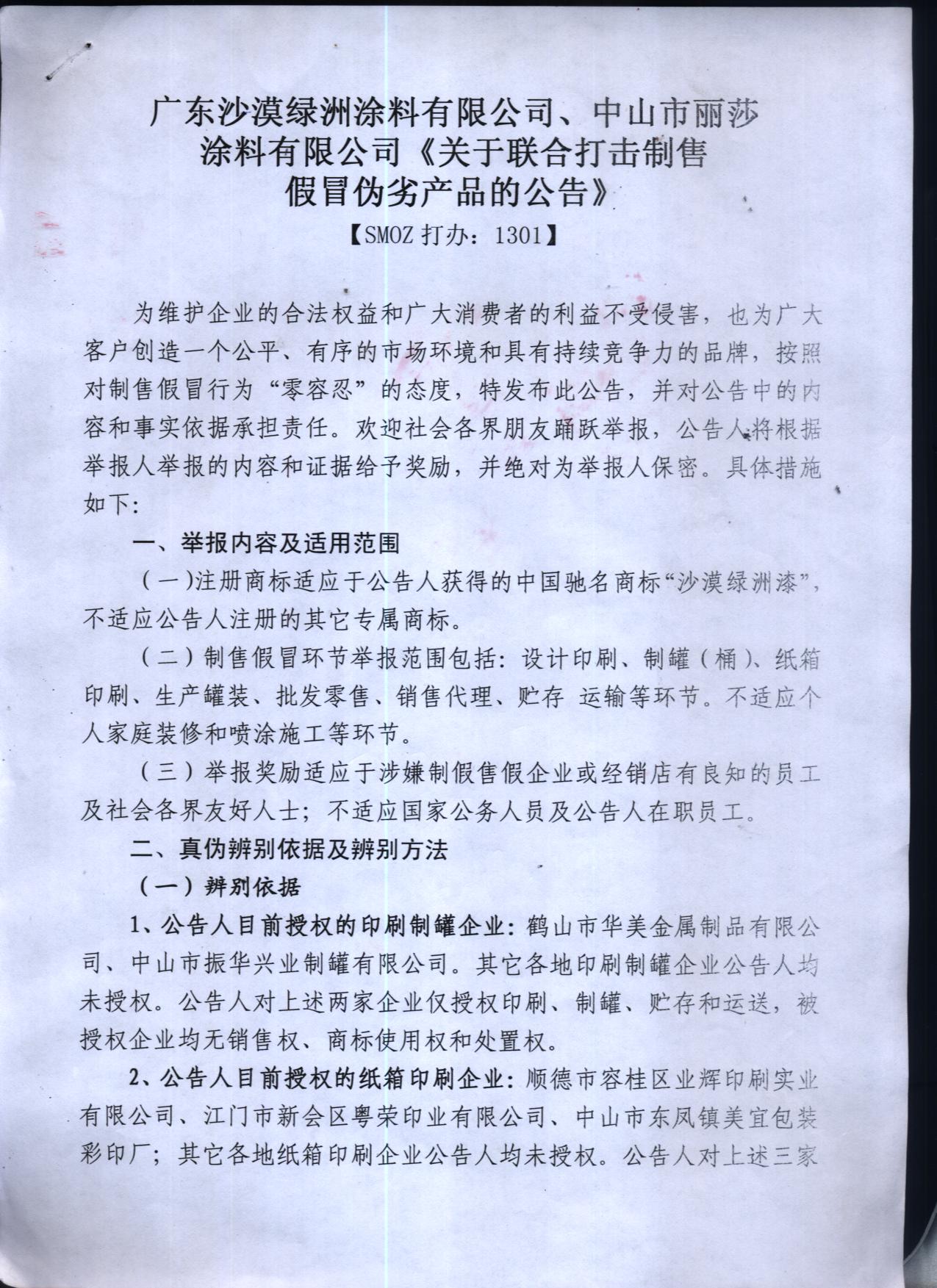 關(guān)于聯(lián)合打擊制銷假冒偽劣產(chǎn)品的公告